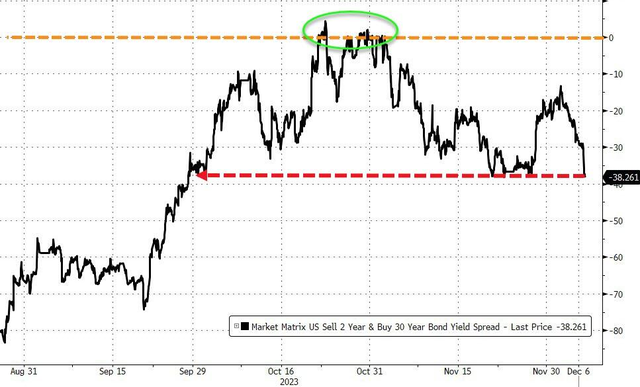 长短期2年与30年期美债收益率曲线趋陡,收益率倒挂加剧。