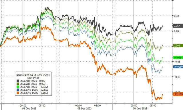 总体而言,截至隔夜美债市场收盘,短债收益率水平较高,其余长债收益率均下修。