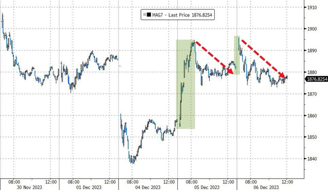 科技股“七姐妹”回吐昨日涨势,大多盘中转跌。其中,亚马逊、微软、谷歌均回落到至少半个月以来的低位。