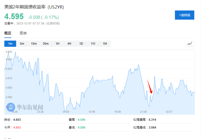 对利率前景更为敏感的2年期美债收益率则短线迅速下破4.6%,回吐日内升幅,截至收盘升逾1个基点。