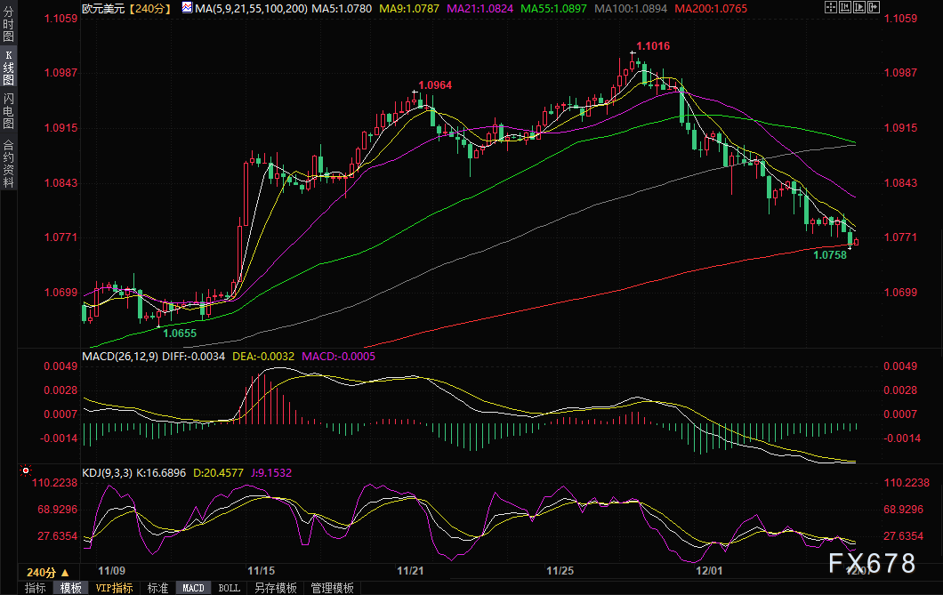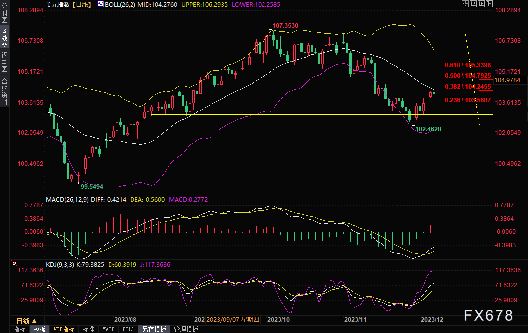 周三(12月6日),尽管美国ADP数据低预期,美元指数 (DXY) 仍上涨0.22%,收报104.117。市场的焦点仍然是周五的非农就业报告,因为投资者将对劳动力市场有更清晰的了解,从而继续押注美联储的下一次决策。美元指数美元指数走强至200日移动平均线点上方,但幅度不大。目前,在非农就业数据公布和美联储会议之前,该指数可能会在该点附近持平。预计美元走软将持续,交易者应等待看跌反应,寻找建立美元空头头寸的机会。