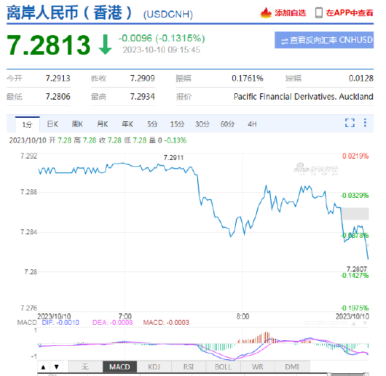 10月10日,人民币中间价报7.1781,上调8点,上一交易日中间价报7.1789。