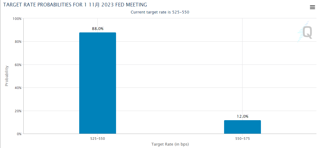 芝商所的美联储观察工具显示,在周一多位美联储官员释放鸽派信号后,美联储11月份加息的概率已从上周五的27%下降到周一的12%。12月加息的可能性从42%降至了26%。