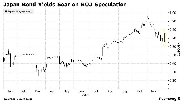 这一结果出炉前一周,日本央行行长植田和男及其副手的言论令金融市场震荡,因借贷成本可能更早结束低于零的状况。在暗示他们可能正在为政策转变做准备的情况下,日本债券收益率出现一年来最大涨幅,日元升值近 4%,至1美元兑141.71日元的四个月高点。