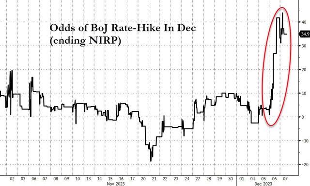 这些观点表明当局正在考虑结束负利率,进一步强化了市场加息预期,市场预计日本央行本月结束负利率的概率从2%飙升至45%,许多人士预计日本央行将在明年逐步退出超宽松政策,部分市场人士押注日本央行将在1月份采取行动。而日元的反应是可以预见的,日元对其他主要货币已经走强,周四日元继续大涨。