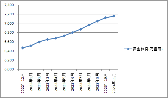 中国11月末黄金储备报7158万盎司,环比增加38万盎司,为连续第13个月增持黄金储备。