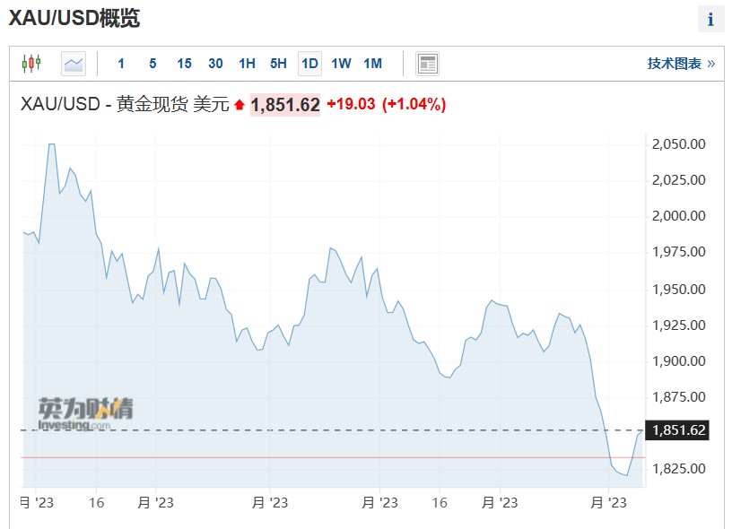 由于以色列和巴勒斯坦近日爆发新一轮大规模军事冲突,紧张局势加剧下避险需求增加,金价走高。截至发稿,黄金现货涨逾1%,报1851.62美元/盎司。作为避险货币的美元和日元也有所走强。.