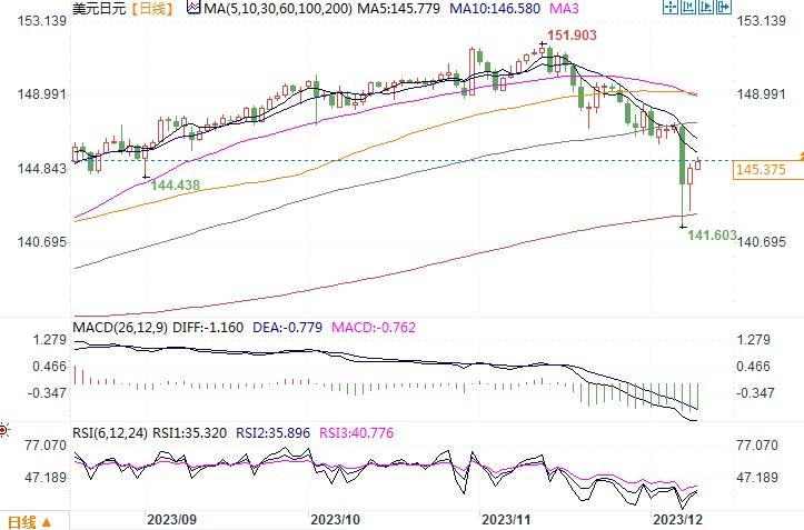 美元兑日元日线图北京时间12月11日10:58 美元兑日元 报 145.436/448。