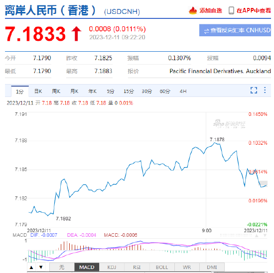 12月11日,人民币中间价报7.1163,下调40点,上一交易日中间价报7.1123。