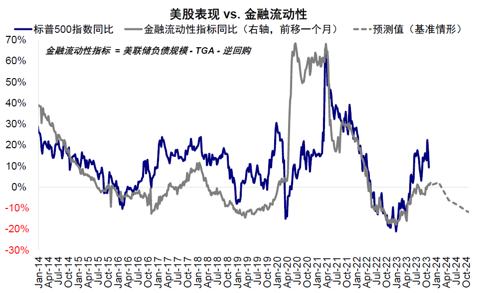 图表15:我们测算金融流动性(美联储负债-逆回购-TGA)一季度仍可得到支撑,但二季度压力可能开始显现