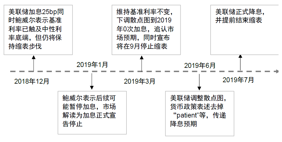 5)如果单纯从节奏和时间考虑,美联储完成政策路径切换也非常紧凑。从现在开始到2024年上半年,只有12月、1月、3月和5月共计4次会议,在这四次会议中美联储需要完成调整点阵图、管理缩表停止、暗示降息三件事。参考上一轮经验,美联储从暗示结束加息到首次降息持续了半年时间。2018年12月FOMC美联储加息25bp(最后一次加息),同时鲍威尔表示基准利率已触及中性利率底端,但仍将保持缩表步伐;2019年1月鲍威尔表示后续可能暂停加息,市场解读为加息正式宣告停止;3月FOMC维持基准利率不变,下调散点图到2019年0次加息,追认市场预期,同时宣布在9月停止缩表;6月FOMC美联储调整点阵图,17个委员中8人预计2019年有超过25bp降息,中位数离降息仅有一人之差,货币政策表述去掉“patient”等,传递降息预期;7月FOMC美联储正式降息,并提前结束缩表。