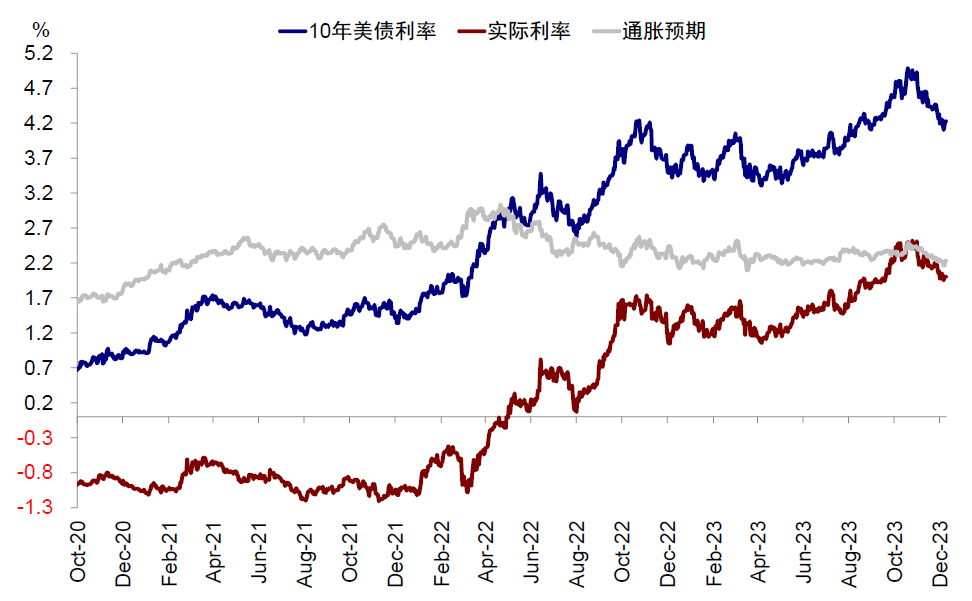 图表3:实际利率回落是主导,体现经济数据边际降温