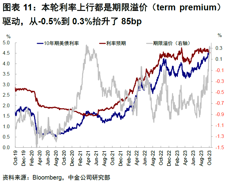 特征二:期限溢价是主导而非利率预期,表明对持有长端国债的风险补偿,而非更高的利率终点是主要驱动