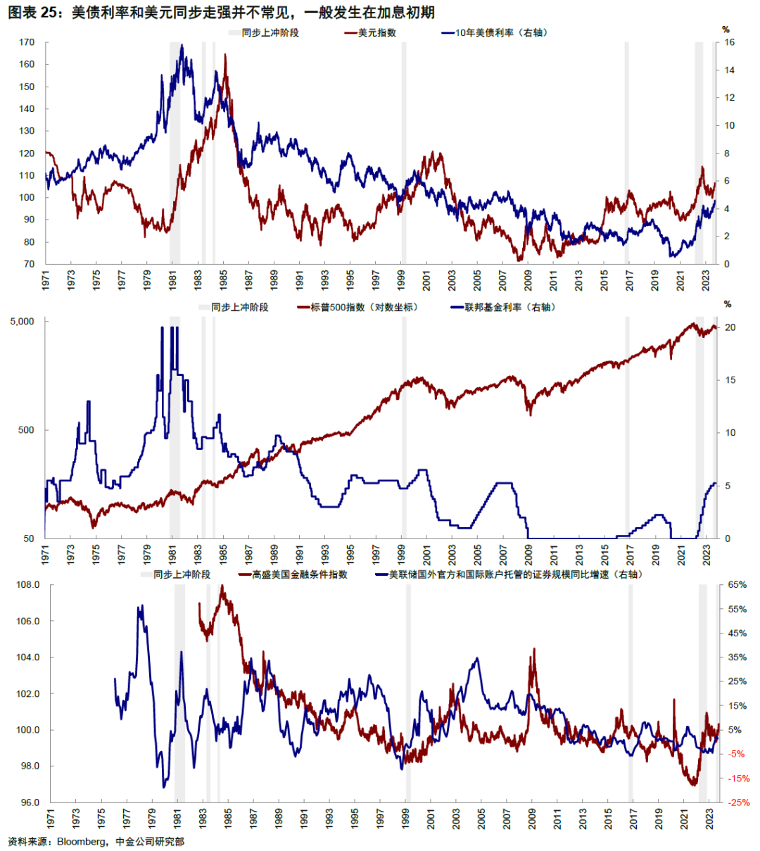 特征四:美债利率与美元同步走强,历史上也并不常见