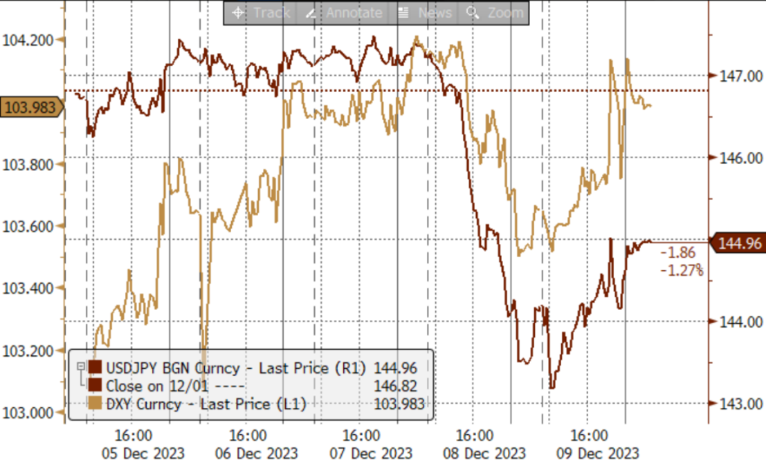 ► 上周(12/4-12/9):日本央行正副行长发言暗示提前退出负利率,日元最强货币