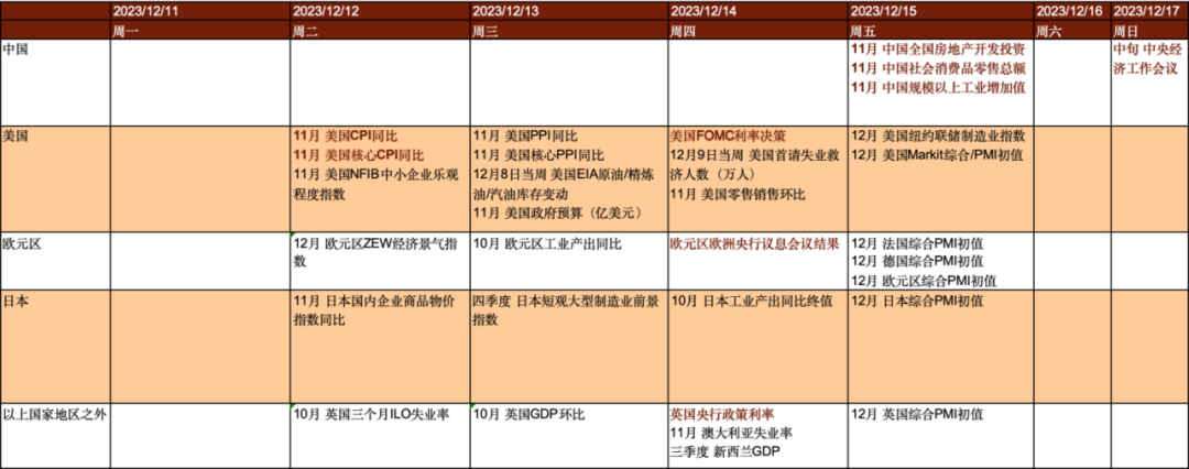 ► 本周(12/11-12/15):关注日媒的货币政策报导、美国CPI