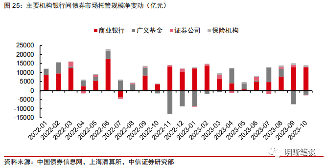 (10月理财测算规模参考我们2023年11月13日外发报告《债市聚焦系列—10月理财规模增长超万亿,11月怎么看?》,资本新规对银行配置基金行为的影响参考2023年8月30日外发报告《债市聚焦系列—资本新规对货基影响几何?》和2023年11月2日外发报告《债市聚焦系列20231102—资本新规正式稿有哪些修订?影响几何?》)