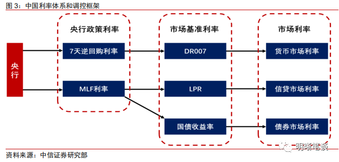 自此,央行对市场利率的价格调控框架逐渐清晰,即以OMO利率作为货币市场资金利率的锚,而MLF利率作为债券市场利率定价的锚,同时由其衍生出的LPR市场化利率指引信贷市场的贷款利率走势。