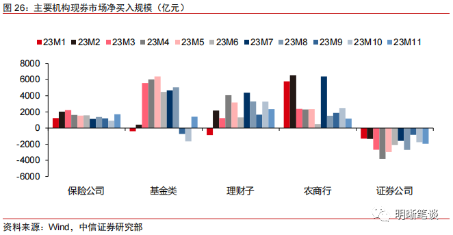其次,中期维度在于增量资金的回归,中小行自营、银行理财、债基、险资或成为明年上半年的配置主力。