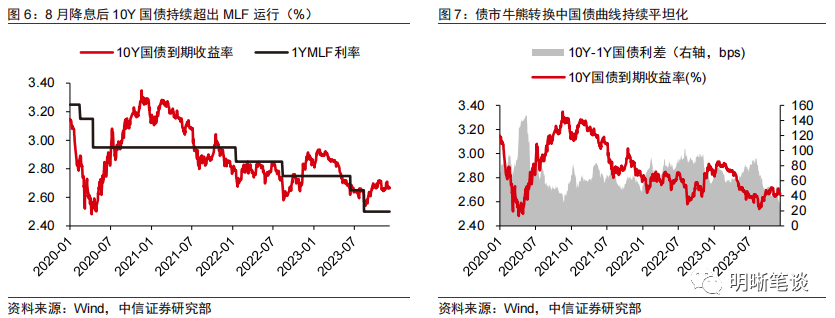 短期内长债利率可能延续在MLF以上的高位震荡,对于后续是否能再度启动新一轮趋势下行并逐步回归政策中枢,我们认为由近及远、由先至后可能需要看到三方面因素的共振: