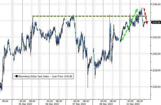彭博美元现货指数盘中逼近上周五所创的高位后涨幅有所收窄