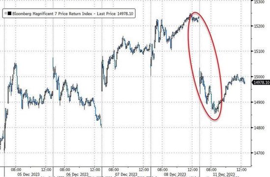 包括苹果、微软、Alphabet、Meta、英伟达、特斯拉、亚马逊在内,七大科技股周一逆市回落,总体创10月26日以来最大跌幅。