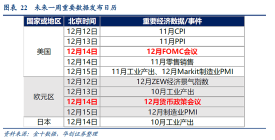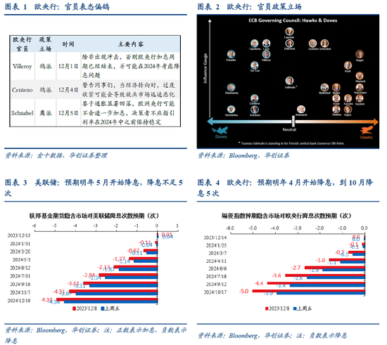 (1)欧央行:近期,欧央行官员普遍释放加息已经停止的鸽派信号,其中,立场偏鹰的施纳贝尔(Schnabel)观点也边际转鸽。12月5日,Schnabel接受路透社采访时表示:“鉴于通胀显著回落,欧洲央行可能不会进一步加息。”