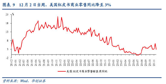 商品消费方面,美国零售销售同比大幅回落。12月2日当周,美国红皮书商业零售同比为3%,11月25日当周为6.3%。