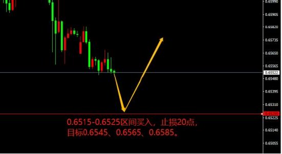 0.6515-0.6525区间买入,止损20点,目标0.6545、0.6565、0.6585。