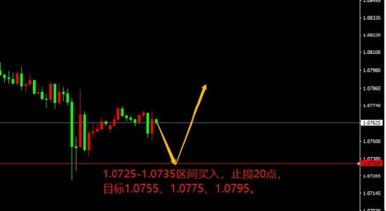 1.0725-1.0735区间买入,止损20点,目标1.0755、1.0775、1.0795。