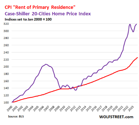 另外,市场租金往往是考察租金CPI走向的前瞻性指标。而根据wolfstreet的数据,市场租金似乎仍有走高趋势。
