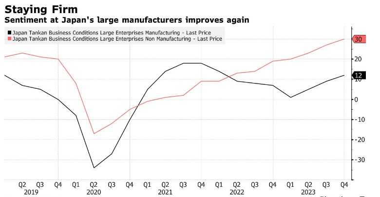 企业信心强劲的迹象对日本央行来说将是一个可喜的迹象,因为它提高了企业继续大幅提高工资的可能性,日本央行希望这可能会推动工资-价格良性通胀循环,为货币政策正常化铺平道路。