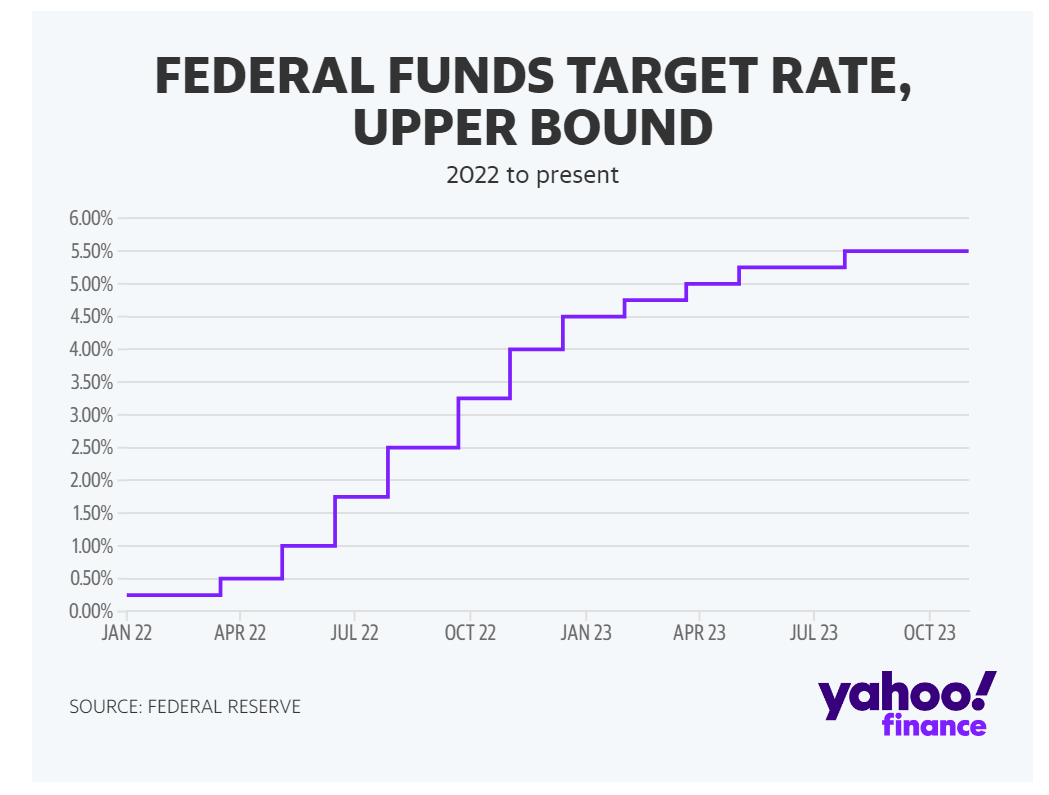 美联储上次加息是在7月份,在过去的两次政策会议上,美联储都决定将利率维持在5.25%-5.50%的22年高位不变。