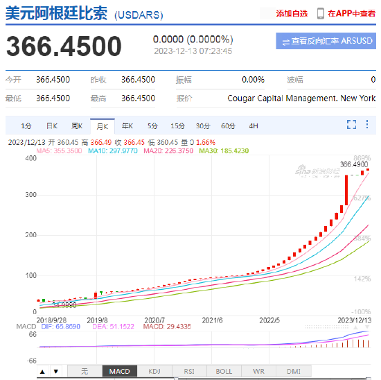 【阿根廷银行周二对客户的汇率为1美元兑700比索 较上周收盘贬值45%】财联社12月13日电,阿根廷央行网站公布的数据显示,阿根廷部分私人商业银行周二对零售客户提供的汇率为1美元兑700比索。部分私人商业银行周二的零售汇率已较上周收盘水平贬值约45%。根据阿根廷央行网站的数据,如果纳入阿根廷的公共银行,周二零售汇率平均收盘价报1美元兑588比索。