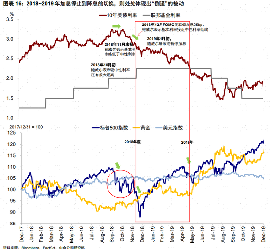 回顾过去几十年加息结束和降息开始的经验,我们发现一些普适性的规律,例如长端美债利率在加息停止前见到高点;市场通常反弹,且新兴领涨;成长和利率敏感型领先;美元指数小幅走弱等等(《加息尾声的资产含义》)。不过,复盘的时候要注意不能忽略各个阶段更大的宏观环境和背景。比如1994 年格林斯潘时期,外部环境和决策选择都更为顺畅,加息停止和降息开启的主动权都由美联储掌握;但2018~2019年则要更为波折。