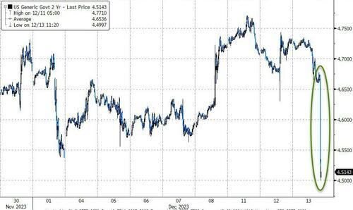 两年期美债收益率跳水约8个基点,刷新日低至4.5353%,日内整体跌18个基点。