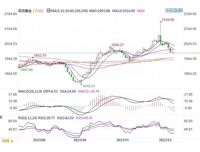周二(12月12日),现货金微跌,但最终持稳于1,978.68美元。