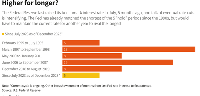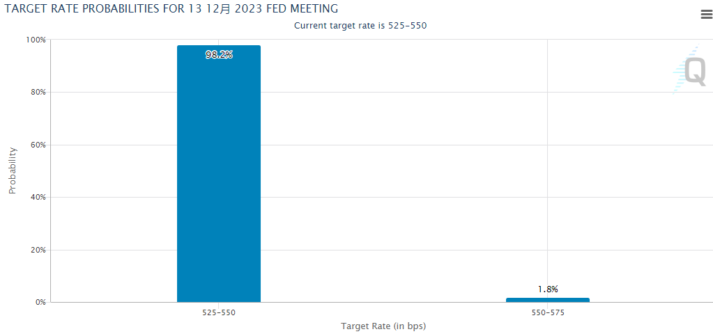 在今晚公布的12月货币政策声明中,负责制定利率的FOMC几乎肯定会表示,委员会决定将联邦基金利率的目标区间维持在5.25%-5.5%。