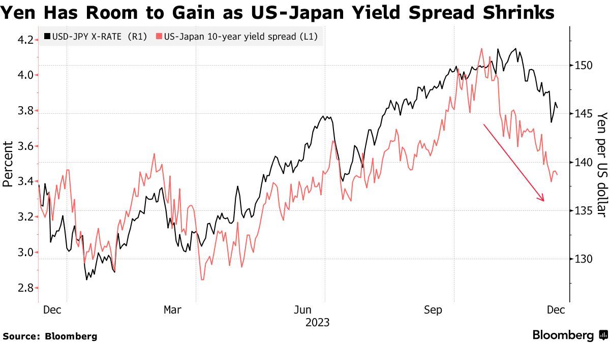 一年前,许多投资者都看好日元,但在2023年,由于美联储继续紧缩、而日本央行坚持实施超宽松货币政策,日元下跌了约10%。如今,基金经理们押注,随着日本央行最终被迫结束负利率政策,2024年日元的情况将有所不同。