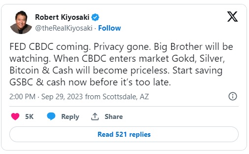 事实上,清崎长期以来一直警告称,他认为各种影响将导致即将到来的灾难,但三个令人担忧的因素尤其突出——恶性通货膨胀、中央银行数字货币(CBDC)和美国政府的行为。