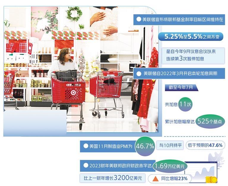 当地时间12月13日,美联储在结束货币政策会议后宣布,将联邦基金利率目标区间维持在5.25%至5.5%之间不变。这是自今年9月份议息会议以来,美联储连续第3次暂停加息。外界普遍认为,美联储本轮加息周期结束。美联储自2022年3月开启本轮加息周期,截至今年7月份,共加息11次,累计加息幅度达525个基点。