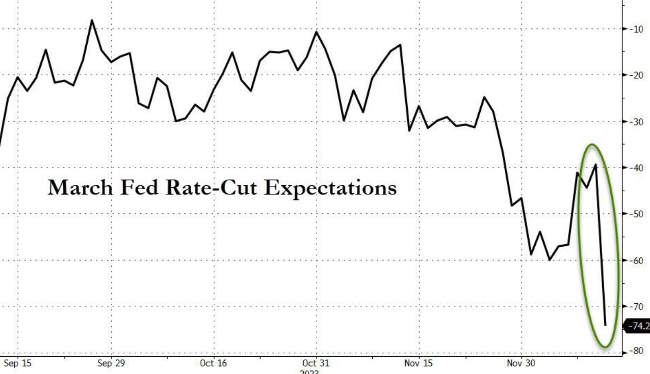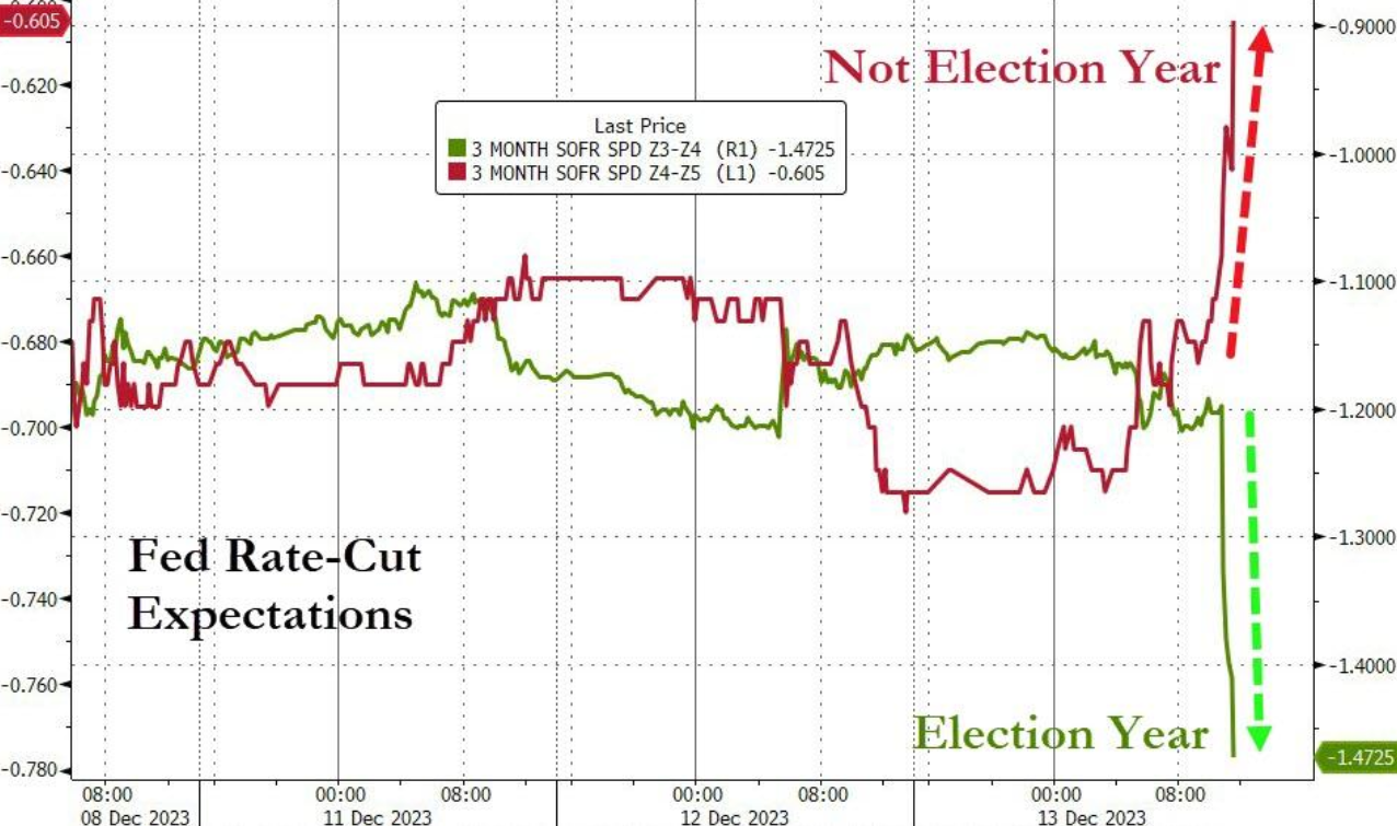 随着美联储转向鸽派,市场转向更加鸽派,现在定价在2024年(大选年)降息150个基点。