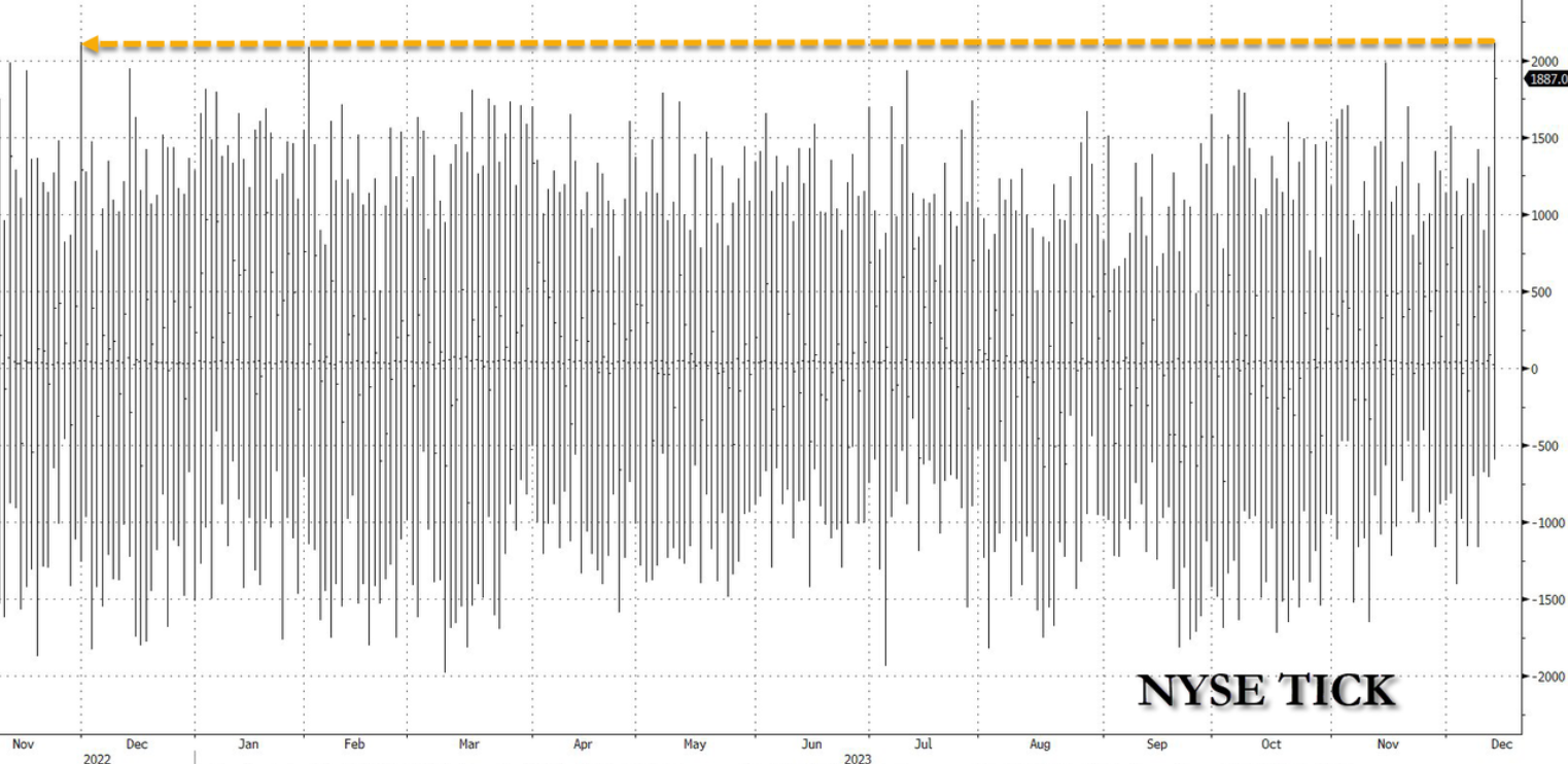 与此同时,美元跌至11月底的低点,彭博美元指数下跌了0.8%,创下近一个月来的最大盘中跌幅。黄金飙升40多美元,重回2000美元上方。道指创下了历史新高。美联储触发了自2022年11月以来最大的美股购买计划。