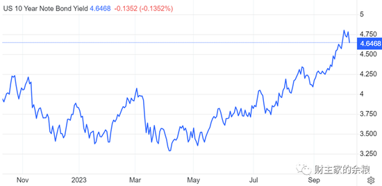 10年期国债收益率,从4.1%一直上涨到最高4.85%,创16年新高;