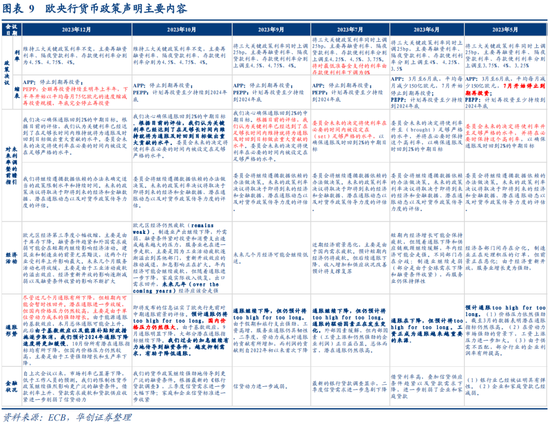 本次政策声明最大的变化在于,对于通胀前景的描述删掉了“预计通胀仍将too high for too long”,显示通胀去化稳步发展,也印证了欧央行“当下利率水平已经达到了足够限制性”的判断。