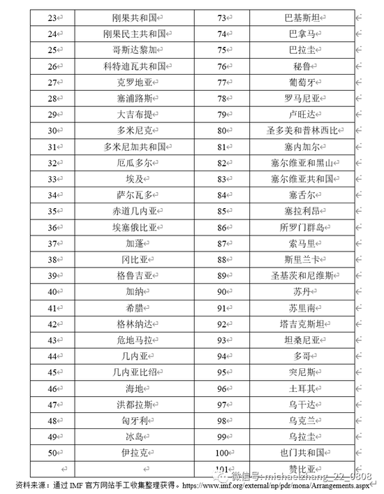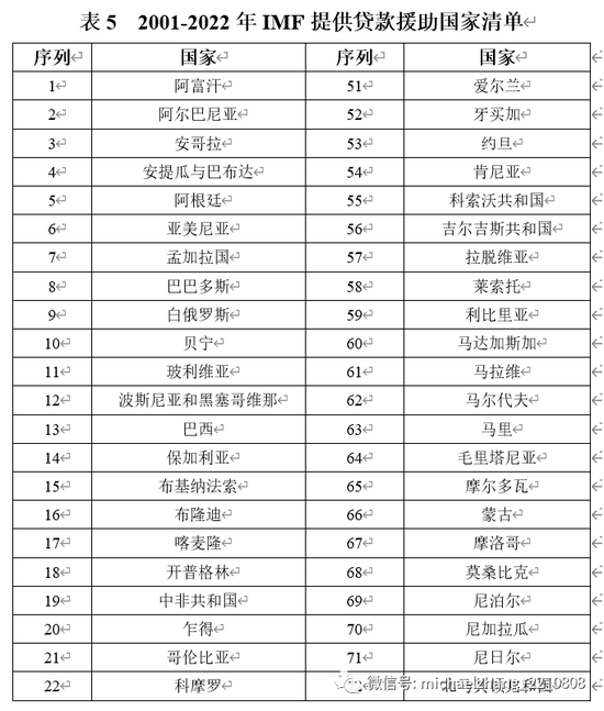 从实际情况来看,美联储货币互换主要涉及与其霸权利益联系紧密的核心发达国家,而IMF主要针对发展中国家和新兴市场国家。从2000至2022年,IMF向101个国家(地区)提供贷款援助(包含处于谈判状态未完成的贷款支持计划)。这些受援国均不涉及与美联储建立货币互换协议的国家(见表5)。