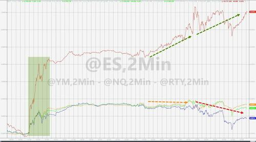 从最近几个交易日美股的走势来看,许多押注大型科技股的投资者受经济数据和货币政策路径确认的鼓舞,已经开始把目光投向更广阔的其他资产。周三,罗素2000小盘股指数大涨 3.5%,是纳斯达克100指数涨幅的两倍多。