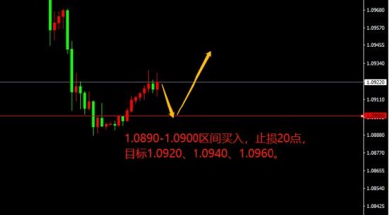 1.0890-1.0900区间买入,止损20点,目标1.0920、1.0940、1.0960。