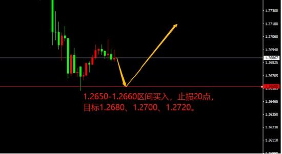 1.2650-1.2660区间买入,止损20点,目标1.2680、1.2700、1.2720。
