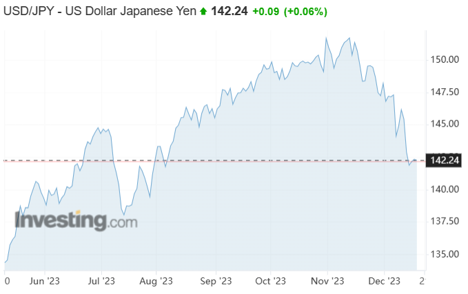 截至目前,日元已经较此前低点开始反弹,美元兑日元现报142.24点。